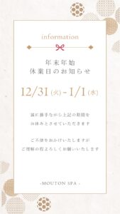 いつもムートンスパをご利用いただき誠にありがとうございます。